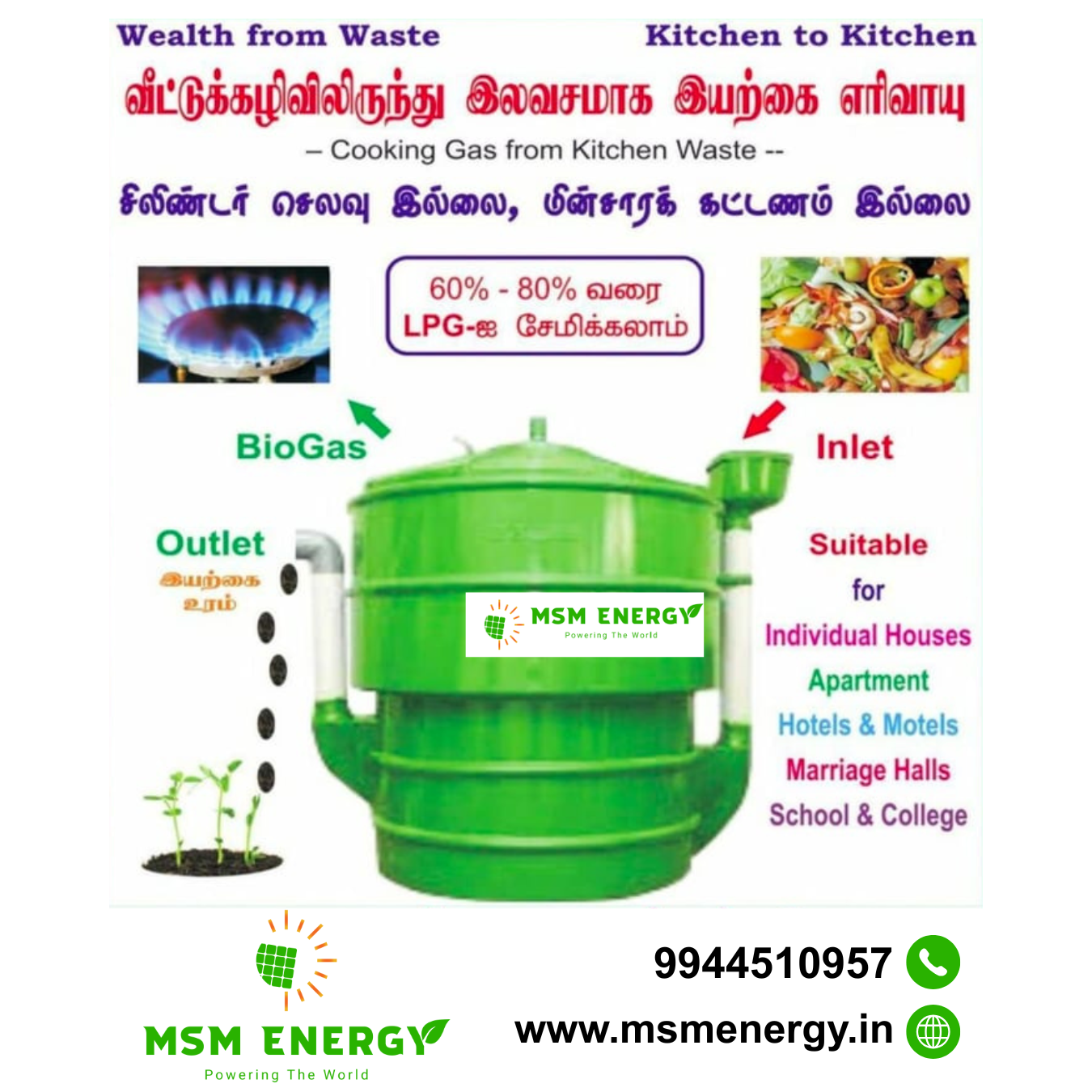 Turn your waste into value with biogas. Clean flame, low cost, and zero pollution—perfect energy made by nature itself. 📞9944510957 🌐www.msmenergy.in 📍Coimbatore #MsmEnergy #Biogas #GreenEnergy #EcoFuel #WasteToPower #SustainableChoice