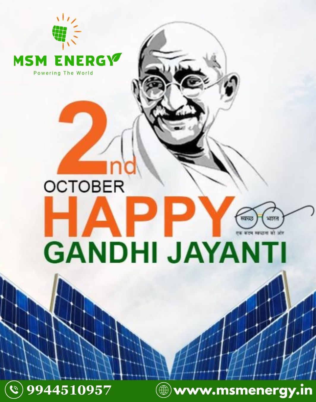 π Gandhi Jayanthi with MSM Energy π β Mahatma Gandhi believed in simplicity & self-reliance β Solar power makes every home energy independent. β His vision of sustainability lives on through renewable energy. β Solar is the most non-violent energy β no harm to nature, no pollution. π9944510957 πwww.msmenergy.in π Coimbatore #MSMEnergy #GandhiJayanthi #MSMsolarcompany #SolarForSustainability #GoSolar #BeTheChange